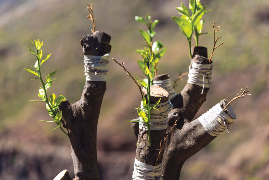 New leaves bud from a pruned branch